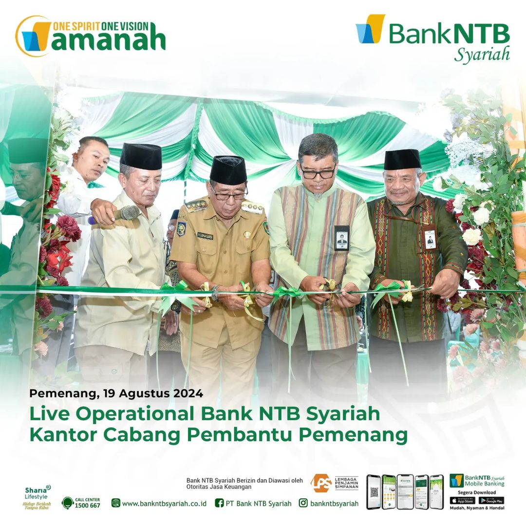 Lombokfile.com -Bank NTB Syariah terus berupaya memberikan layanan prima dalam memenuhi kebutuhan transaksi masyarakat dan nasabah, sejalan dengan semangat tersebut, kantor baru Bank NTB Syariah Cabang Pembantu Pemenang telah secara resmi beroperasional pada 19 Agustus 2024. Berlokasi di Jl. H. Mansur – Pemenang Timur, Kec. Pemenang, Kab. Lombok Utara – NTB, kantor baru KCP Pemenang merupakan relokasi dari kantor sebelumnya yang beralamatkan di Jl. Raya Mataram-Tanjung, Kec. Pemenang, Kab. lombok Utara-NTB (Depan SPBU Pemenang).