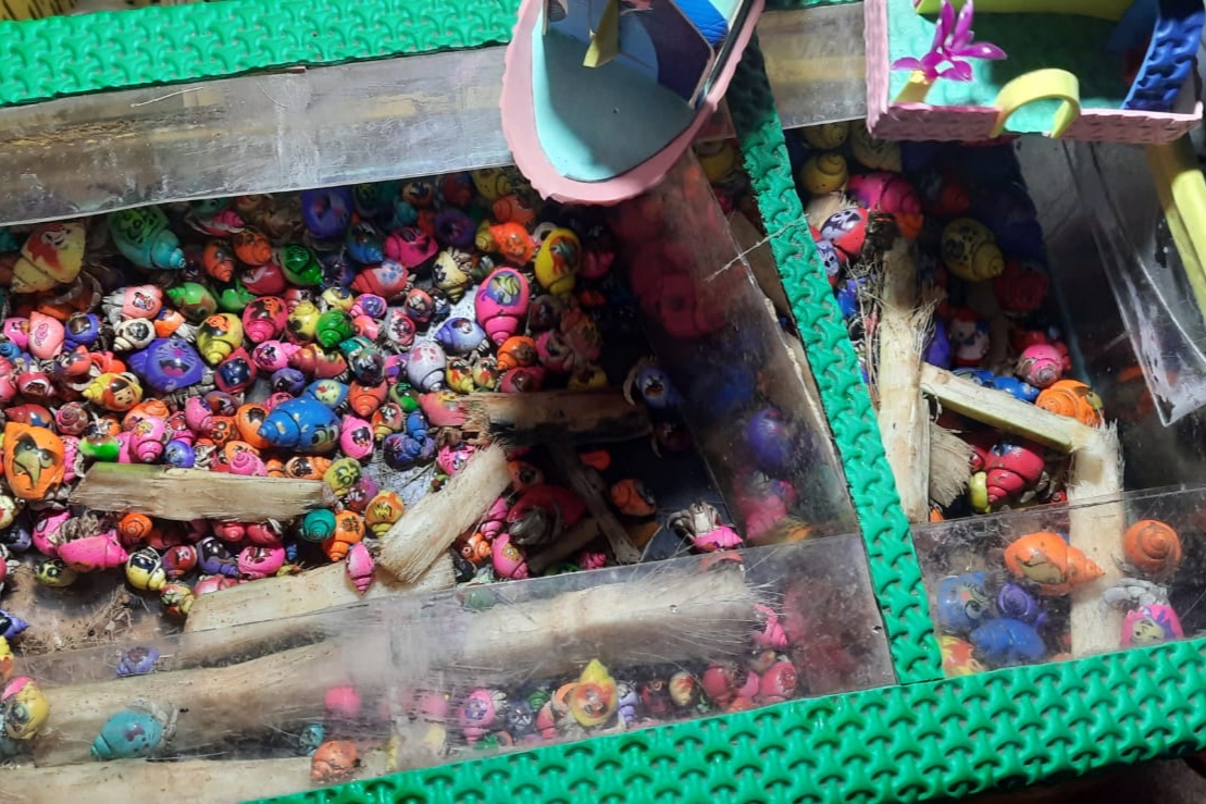 Kelomang yang dijual pun memiliki keunikan tersendiri, dimana ia terlebih dahulu akan menghias cangkang Kelomang dengan berbagai warna dan kartun lucu.