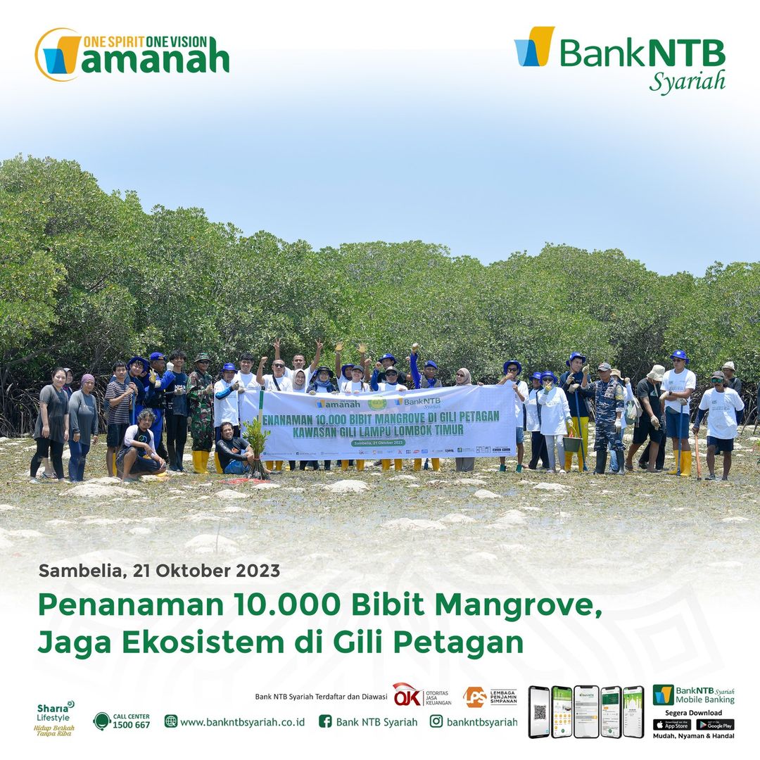 Lombokfile.com -Bekerja sama dengan Yayasan Komite Pengelolaan Perikanan Laut (YPPKL) Sambelia, Bank NTB Syariah melakukan penanaman 10.000 bibit pohon mangrove di Gili Petagan yang berada dalam Kawasan Gili Lampu pada Sabtu, 21 Oktober 2023. Berada 3 mil dari Gili Lampu, Gili Petagan merupakan pulau kosong tanpa penghuni yang dipenuhi oleh pohon mangrove dengan luas Kawasan Mangrove ± 41.04 ha.