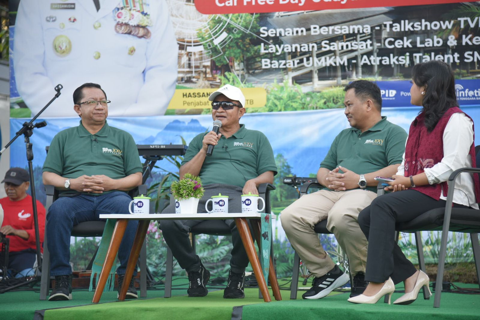 Acara tersebut dihadiri langsung oleh Pj Gubernur NTB Hassanudin yang didampingi oleh isteri, Penjabat (Pj) Ketua TP PKK NTB, Ibu Dessy Hassanudin, dan jajaran Forkopimda NTB. Pj Gubernur NTB Hassanudin mengikuti dialog NTB Bicara yang disiarkan langsung oleh TVRI NTB bersama Kepala BPI, Ivanovich Agusta, Sekjen Kemendes Pembangunan Daerah Tertinggal dan Transmigrasi, Taufik Majid, Kepala Kanwil DJP Nusa Tenggara, Samingun, Kepala Dinas Koperasi dan UKM Provinsi NTB, Ahmad Mashuri, dan Kadis DPMPD Dukcapil NTB Ahmad Nur Aulia.