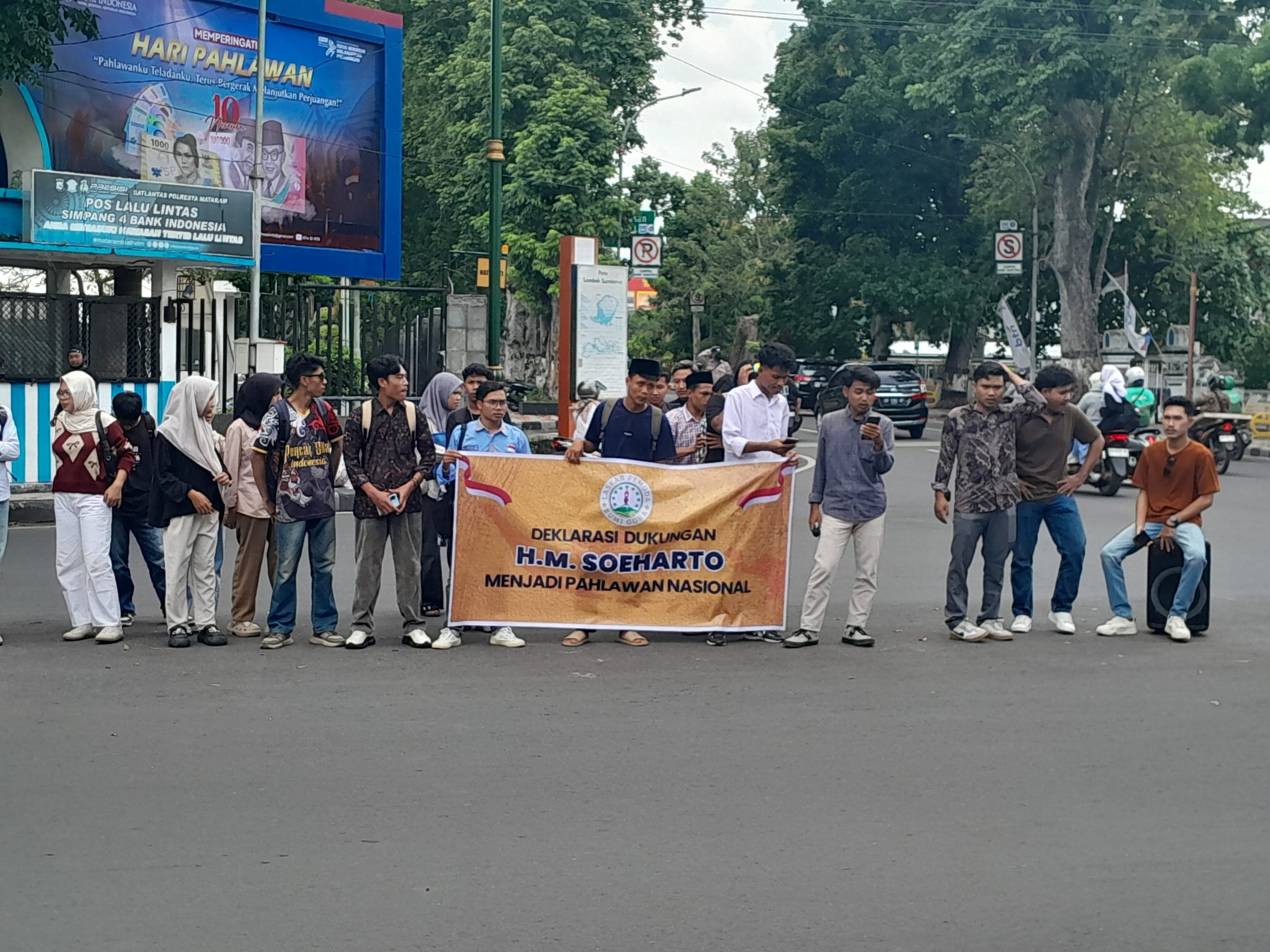Lombokfile.com – Laskar Pemuda Bumi Gora menggelar aksi deklarasi mendukung pemberian gelar Pahlawan Nasional kepada H.M. Soeharto oleh pemerintah. Senin, 10 November 2025.