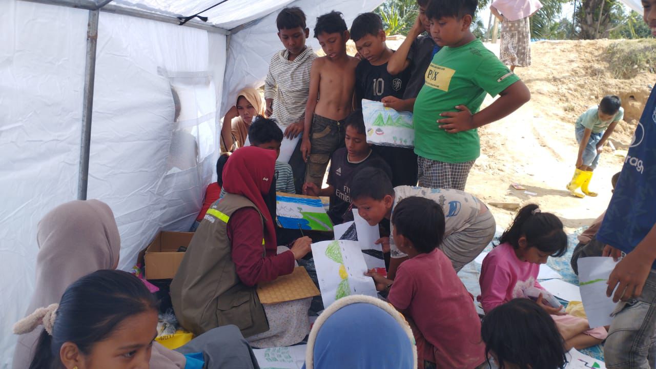 Melalui pendekatan yang ramah anak, tim DKJPS memberikan pendampingan psikososial berupa aktivitas bermain, bercerita, menggambar, serta komunikasi suportif untuk membantu anak-anak mengekspresikan emosi dan mengurangi dampak trauma akibat bencana banjir. Kegiatan ini bertujuan memulihkan rasa aman, menumbuhkan kembali keceriaan, serta mencegah gangguan psikologis jangka panjang pada anak-anak korban bencana.