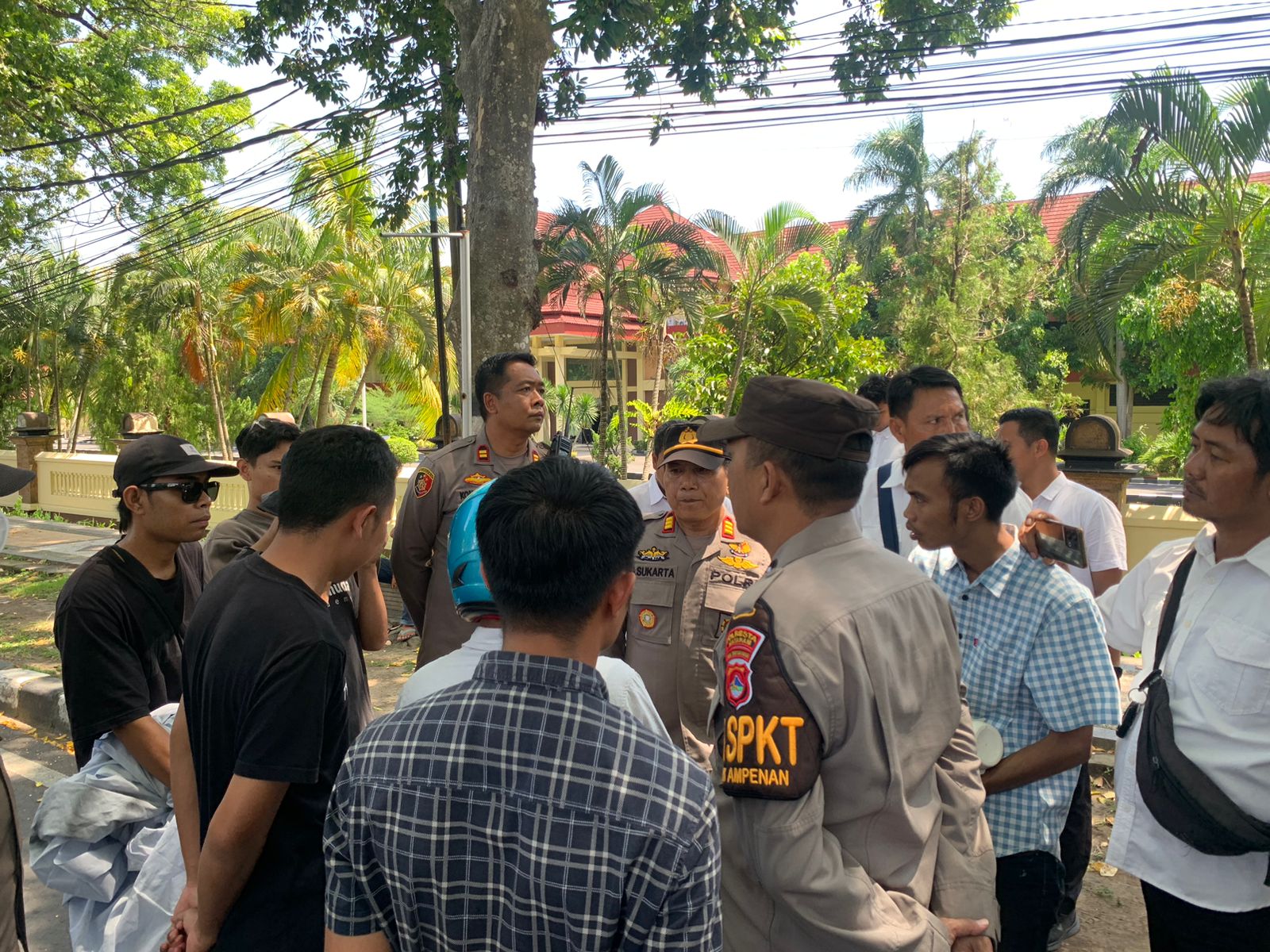 Awalnya, massa ingin membentangkan spanduk sepanjang 500 meter bertuliskan desakan agar Polda NTB menangkap DPO Muhammad Harharah. Namun sebelum dibentangkan, aparat kembali merampas kain sebagai media menyampaikan aspirasi tersebut.
