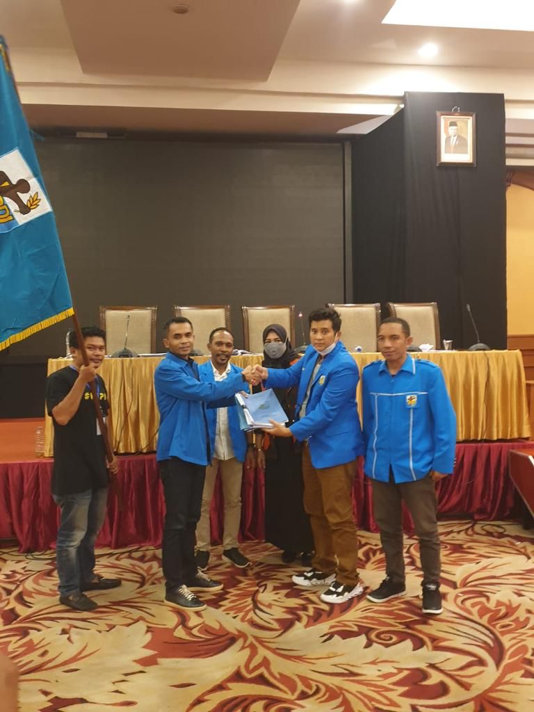 Usai penghitungan suara dan penetapan Ketua terpilih, perwakilan DPP KNPI Pusat menyerahkan bendera kepada H Baihaqi ST.