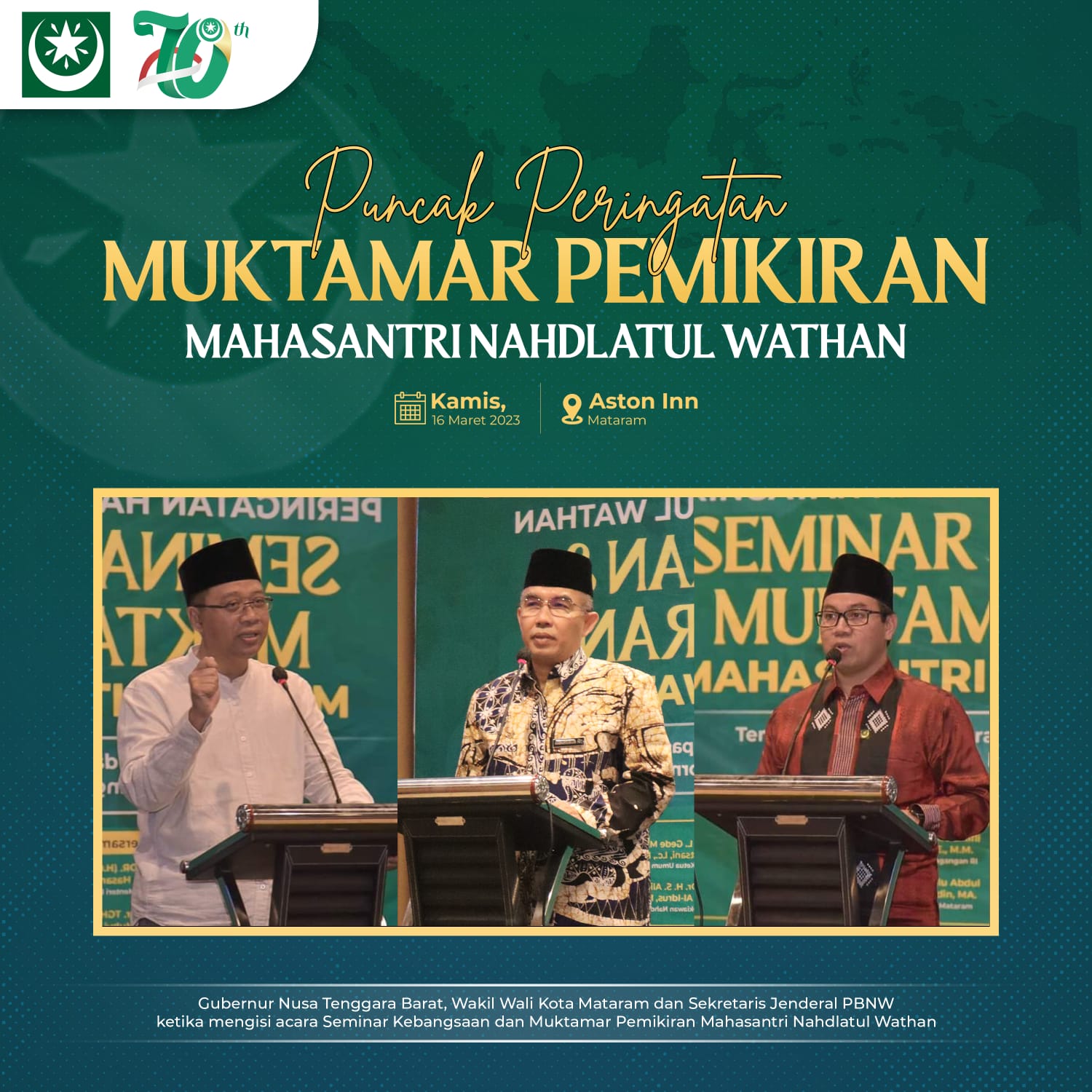 Salah satunya, kemarin (16/3), panitia Peringatan Hari Jadi (HADI) ke-70 Nahdlatul Wathan menggelar Seminar Kebangsaan dan Muktamar Pemikiran Mahasantri Nahdlatul Wathan, di Mataram. Seminar menghadirkan dua pembicara kunci yakni Pakar Hukum Tata Negara Prof Yusril Ihza Mahendra dan Menteri Perdagangan H Zulkifli Hasan. Seminar mengangkat tema “Eksistensi dan Peran Ormas dalam Mendorong Partisipasi Publik bagi Pembangunan Pasca 2 Dekade Reformasi’.