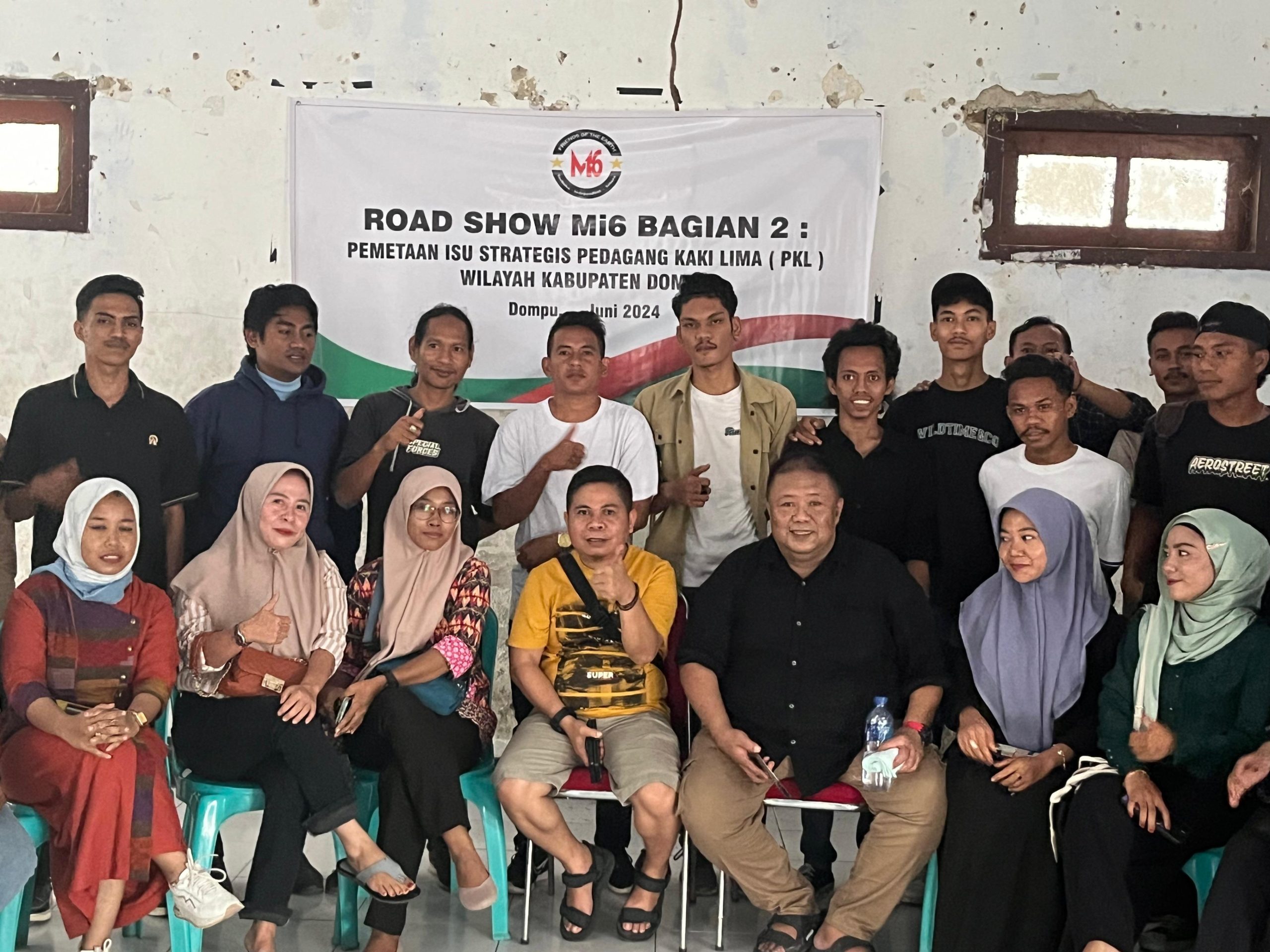 Di Kabupaten Dompu, Mi6 mengumpulkan puluhan Pedagang Kaki Lima (PK) di bawah naungan Asosiasi Pedagang Kaki Lima Indonesia (APKLI) Kabupaten Dompu. Skuad Mi6 dipimpin langsung oleh Direktur Mi6 Bambang Mei Finarwanto didampingi langsung oleh Ketua APKLI Provinsi NTB Abdul Majid.