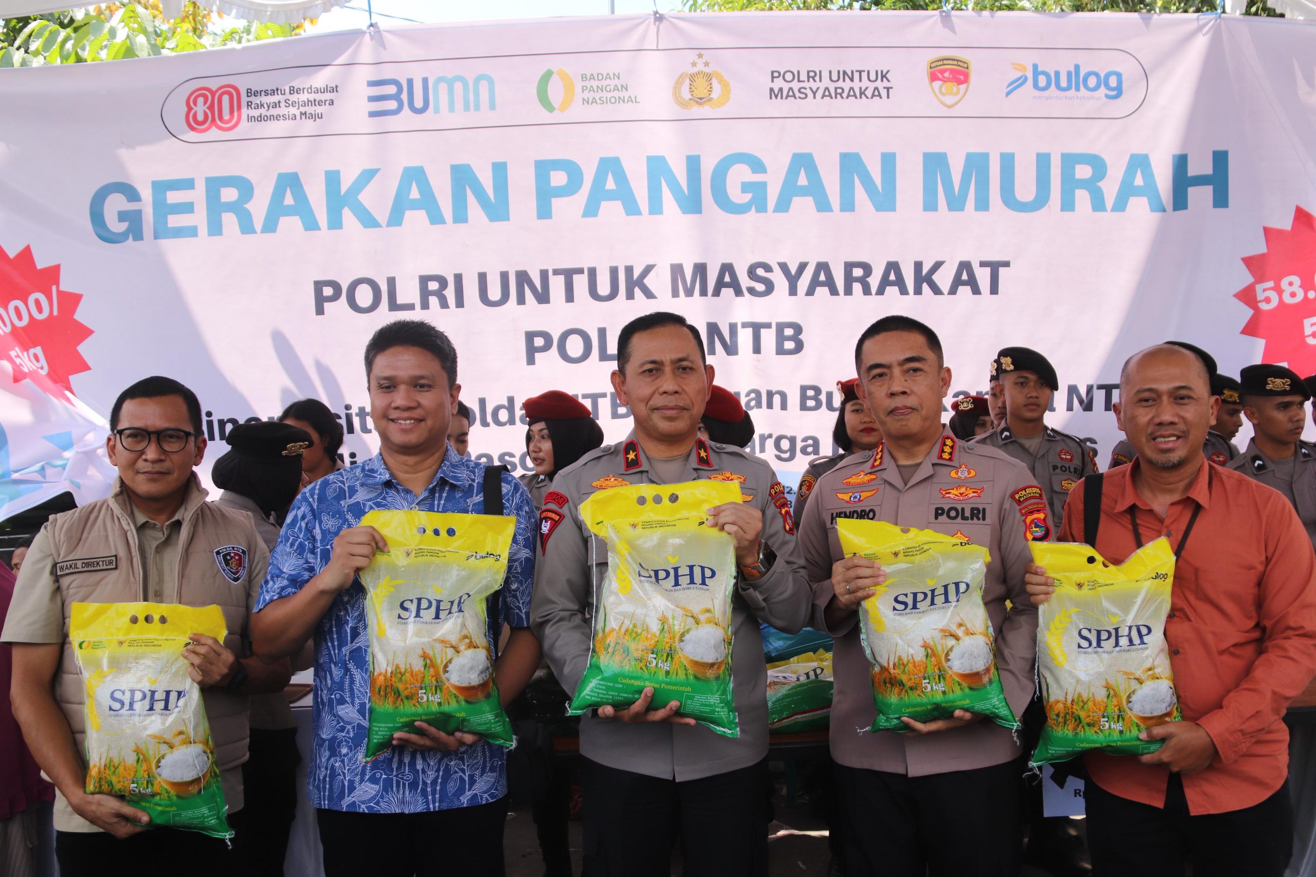 “Hari ini target kami 25 ton beras. Selain beras, ada juga minyak goreng dan gula dengan harga di bawah pasar. Semua ini hasil kerja sama dengan BULOG,” ujar Brigjen Hari.