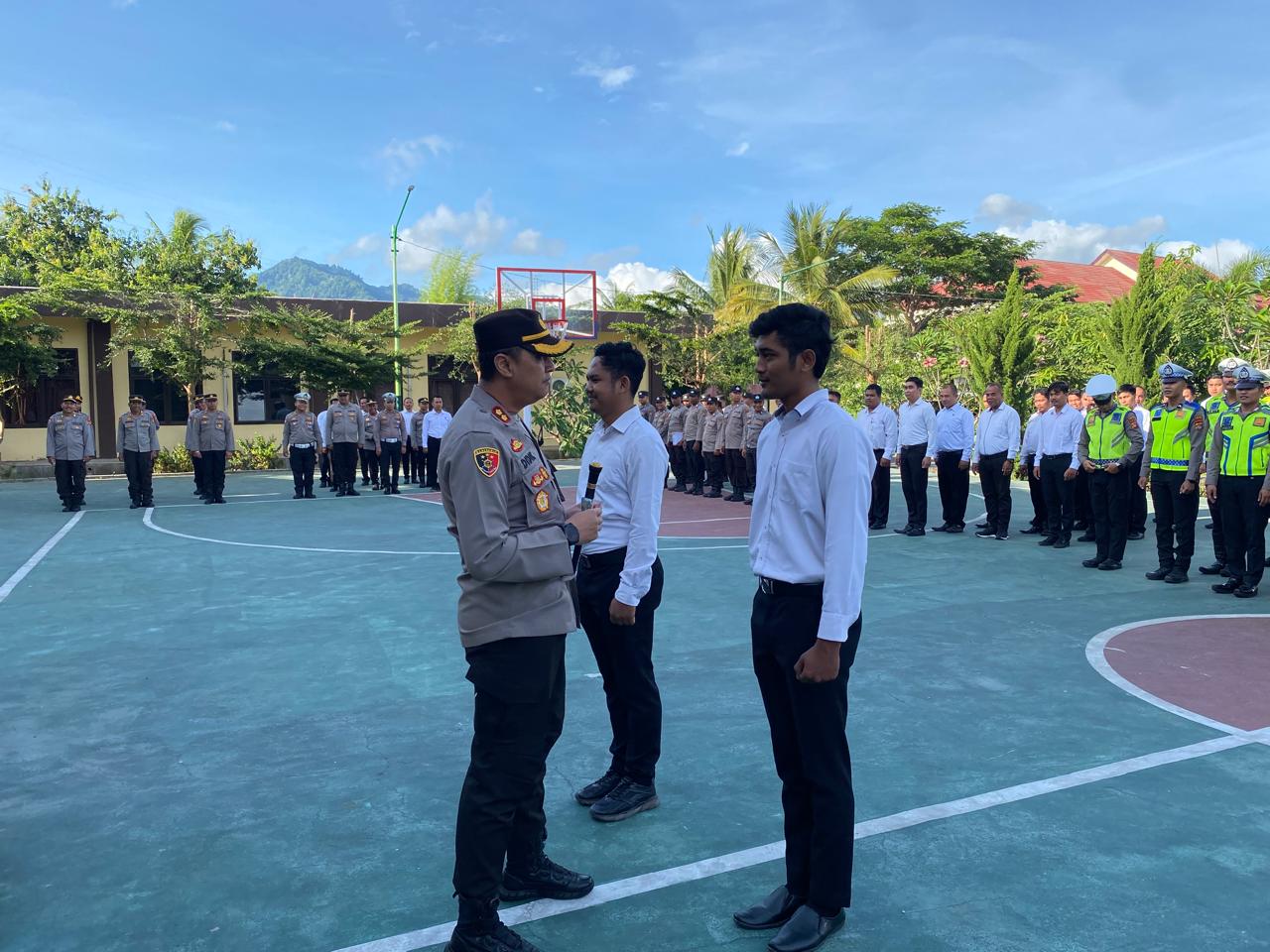 Terus tingkatkan prestasi dan hindari perbuatan kontra produktif yang dapat merusak nama baik citra Polri dengan memahami nilai-nilai yang ada di dalam Tribrata, Catur Prasetya serta aturan lain yang mengikat dalam kode etik dan disiplin Polri.” Ujar Kapolres.
