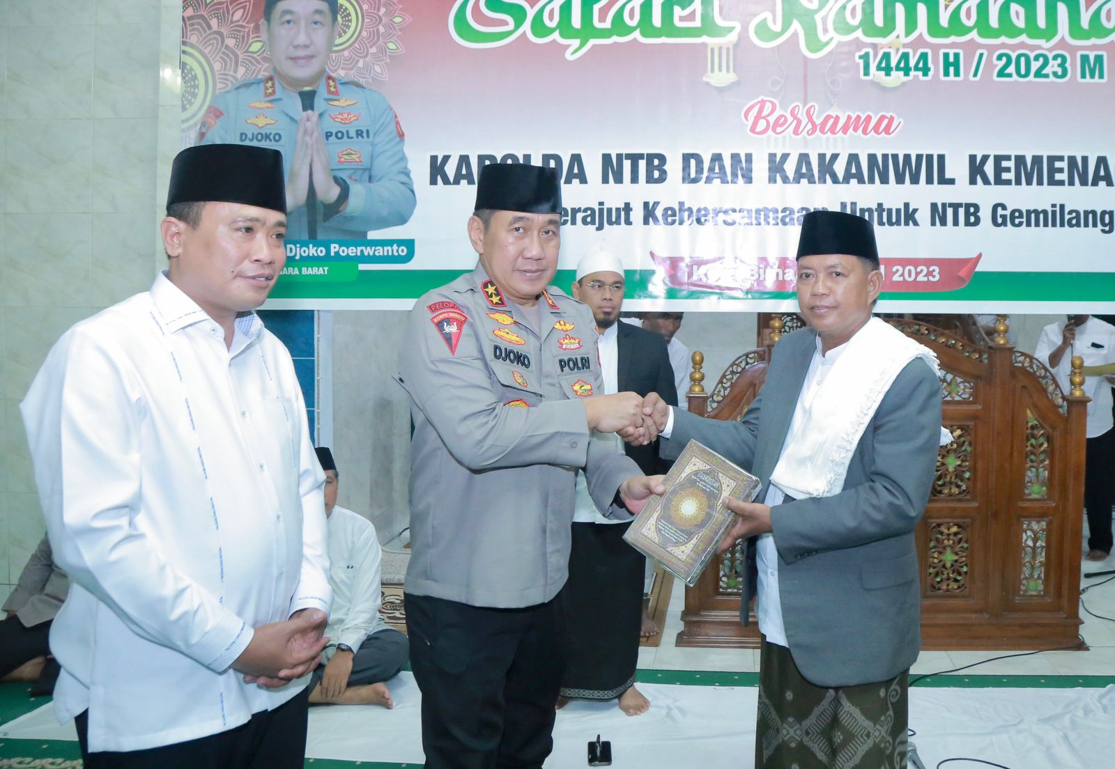 Sebelumnya Kepala Kemenag Kanwil NTB H Zahroni Aziz, dalam sambutannya mengapresiasi ide dan gagasan mulia dari Kapolda NTB Irjen Pol Djoko Poerwanto keliling NTB guna bertemu dengan warga NTB di bulan suci penuh magfirah dengan tajuk Safari Ramadhan.